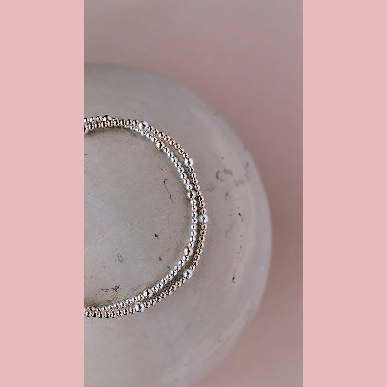 A delicate way to mix your metals! Dainty 2mm and 3mm beads in gold and silver!